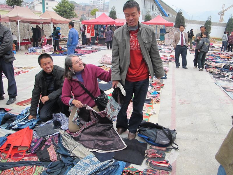Returning to her home in Santa Fe, New Mexico, Pam, is now selling some of her textile treasures and as well as Miao silver work on the textiletreasures.info web site and at local markets.
