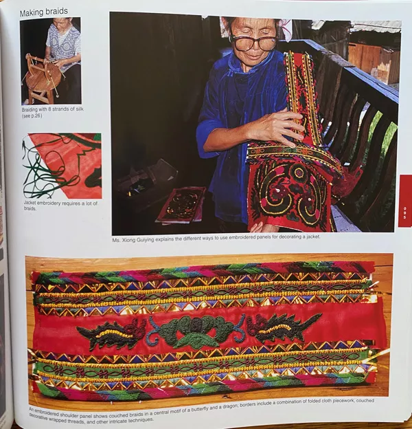A fabulous resource as a culmination of textile research conducted among the Miao (Hmong people living in China) in Guizhou Province, China, over a twenty-five year span first begun by Dr. Sadae Torimaru and continued by her daughter Dr. Tomoko Torimaru. Features step-by-step instructions and color photographs to accompany each step for hundreds of traditional embroidery techniques, including sections on Miao traditional dress, cloth and materials, various individual and combined stitches, piecework and applique techniques, projects and uses by specific people in various regions, and discussions of motifs and symbolism. 168 pages; English text; published by University of Hawai'i Art Gallery, 2008.