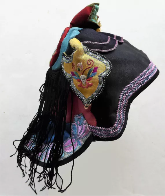 681 Lotus Bud Chinese Child's Silk Fringed Hat