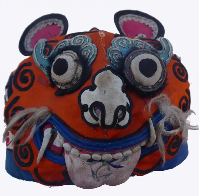 693 Friendly Orange Silk Tiger Chinese Child's Hat