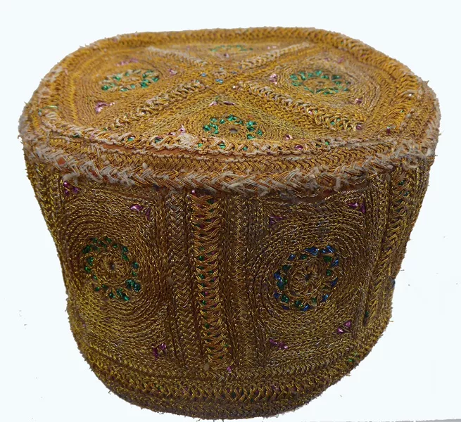 755 Golden Thread Embroidered Traditional Skullcap Balochistan, Pakistan